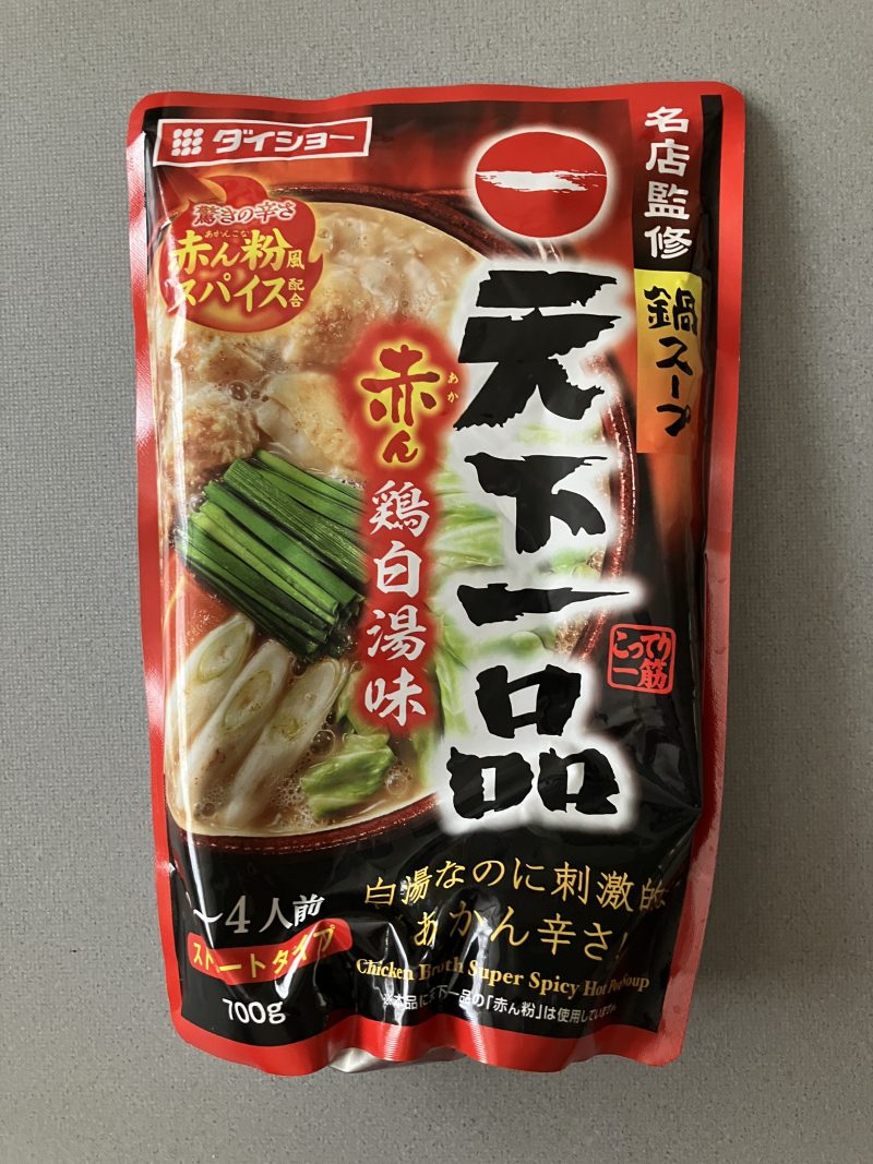 そのような商品群を眺めていると、以前食べたことがある天下一品の鍋スープの黒パッケージのほかに、赤パッケージがあることに目が留まりました。