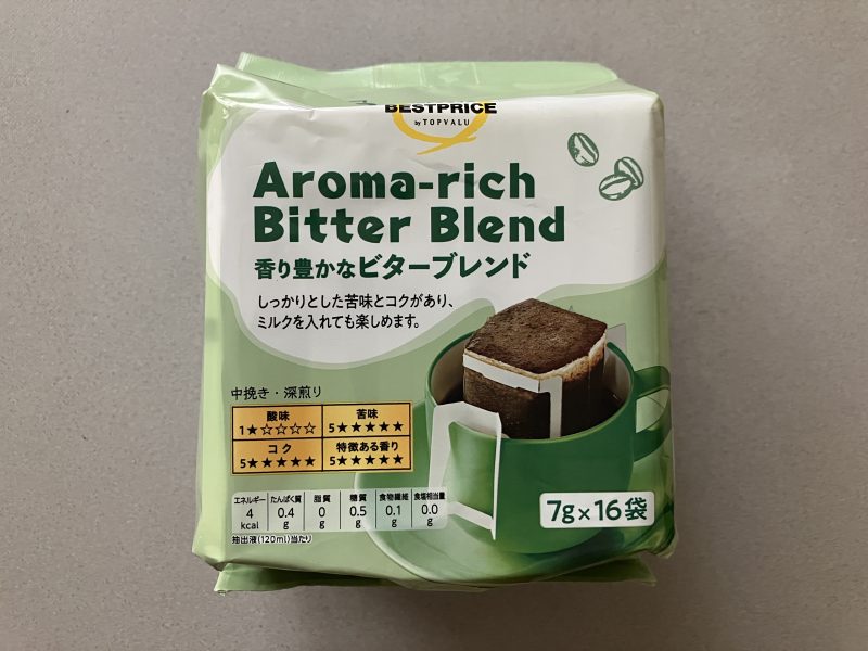 ところが、この物価高で、上記商品もいつの間にか値上げされており、さすがに高いな~と思い始めていたところ、ふとスーパーの棚の隣に並んでいたのが、今回紹介する同じトップバリュのレギュラーコーヒー(トリップコーヒー)です。